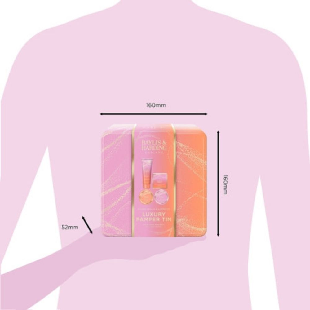 Malá sada, velká dávka péče. Čtyřdílné balení přináší kompletní rituál pro jemnou a vyživenou pokožku. Sprchový krém a tuhé mýdlo jemně čistí tělo i ruce, zatímco tělové máslo a krém na ruce dodají hydrataci, hebkost a krásnou vůni. Sladká jojoba, vanilka a mandlový olej společně vytváří hřejivou, smyslnou atmosféru, která zpříjemní každý den. Produkty jsou uloženy v elegantní plechové dóze v metalických ombré odstínech růžové a broskvové, doplněné o třpytivé detaily – ideální i jako dárek.