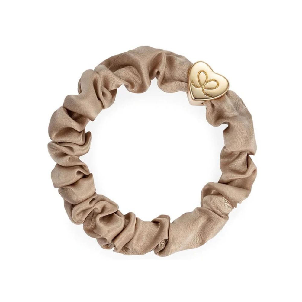 By Eloise Gold Heart Silk Scrunchie Mocha je malý klenot, který promění obyčejnou gumičku ve skutečný módní doplněk. Je vyrobená z luxusního hedvábí, které je k vlasům maximálně šetrné, chrání je před lámáním, třepením a nežádoucím krepatěním. Díky tomu zůstávají hladké, lesklé a zdravé. Jemná béžová barva s nádechem pískového tónu se zlatým srdíčkem působí elegantně a vynikne nejen ve vlasech, ale i na ruce jako stylový náramek.