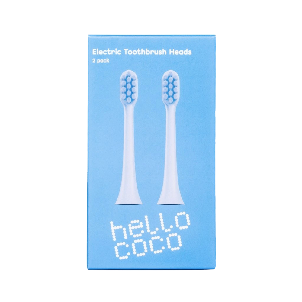 Sada modrých náhradních hlavic pro elektrický zubní kartáček Hello Coco – ideální pro pravidelnou výměnu a udržení optimální čistoty. Kompatibilní s modely elektrických kartáčků Hello Coco (modrý i růžový).