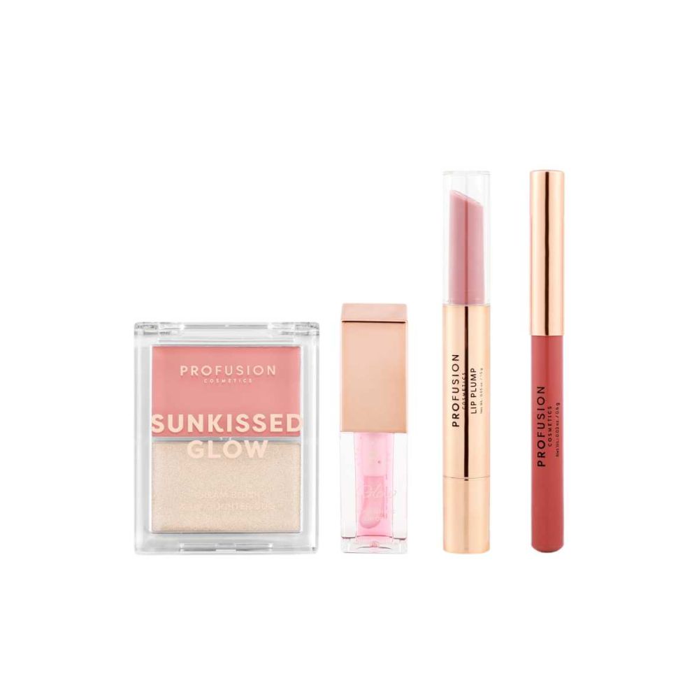 Lip Plump Ingredients (1.5 g) Tridecyl Trimellitate, Hydrogenated Polyisobutene, Dipentaerythrityl Pentaisononanoate, Polyisobutene, 2-Ethylhexyl Palmitate, Hydroxystearic Acid, Microcrystalline Wax, VP/Hexadecene Copolymer, Menthyl Lactate, Ozokerite, Tocopheryl Acetate, Phenoxyethanol, Ethylhexylglycerin, Aluminum Hydroxide, Tocopherol, Titanium Dioxide (CI 77891), Iron Oxides (CI 77491), Iron Oxides (CI 77492), Iron Oxides (CI 77499), D&C Red No.6 Barium Lake (CI 15850), D&C Red No.7 Calcium Lake (CI 15850), FD&C Yellow No.5 Aluminum Lake (CI 19140). Highlighter Ingredients (2.5 g) Mica, Polyethylene, Magnesium Stearate, Mineral Oil, Dimethicone, 2-Ethylhexyl Palmitate, Tridecyl Trimellitate, Hydrogenated Polyisobutene, Phenoxyethanol, Dipentaerythrityl Pentaisononanoate, Octyldodecanol, Microcrystalline Wax, Dimethicone Crosspolymer, Ethylhexylglycerin, Triethoxycaprylylsilane, Aluminum Hydroxide, Tocopheryl Acetate, Pentaerythrityl Tetra-Di-T-Butyl Hydroxyhydrocinnamate, Tin Oxide, Tocopherol, Titanium Dioxide (CI 77891), Iron Oxides (CI 77491), Iron Oxides (CI 77492), Iron Oxides (CI 77499), FD&C Red No.40 Aluminum Lake (CI 16035). Cream Blush Ingredients (2.2 g) Tridecyl Trimellitate, Polyisobutene, Hydrogenated Polyisobutene, 2-Ethylhexyl Palmitate, Diglyceryl Adipate/Caprate/Caprylate/ Hydroxystearate/Isostearate/Stearate, Kaolin, Microcrystalline Wax, Ozokerite, Polyethylene, Polyhydroxystearic Acid, Tocopheryl Acetate, Phenoxyethanol, Ethylhexylglycerin, Aluminum Hydroxide, Tocopherol, Titanium Dioxide (CI 77891), Iron Oxides (CI 77491), Iron Oxides (CI 77492), Iron Oxides (CI 77499), FD&C Yellow No.5 Aluminum Lake (CI 19140), D&C Red No.6 Barium Lake (CI 15850), D&C Red No.7 Calcium Lake (CI 15850). Nourishing Lip Oil Ingredients (3.5 ml) Mineral Oil, Polyisobutene, Tridecyl Trimellitate, Hydrogenated Styrene/Isoprene Copolymer, 2-Ethylhexyl Palmitate, Tocopheryl Acetate, Pentaerythrityl Tetra-Di-T-Butyl Hydroxyhydrocinnamate, Simmondsia Chinensis (Jojoba) Seed Oil, Caprylic/Capric Triglyceride, Arnebia Euchroma Root Extract, Perilla Ocymoides Seed Extract, Fragrance, D&C Violet 2 (CI 60725). Nourishing Lip Oil Fragrance Contains: Benzyl Benzoate (≤0.252%), Vanillin (0.0241%), Linalool (0.0124%), Citronellol (0.0121%), D-Limonene (0.0384%), Geranyl Acetate (0.0121%).