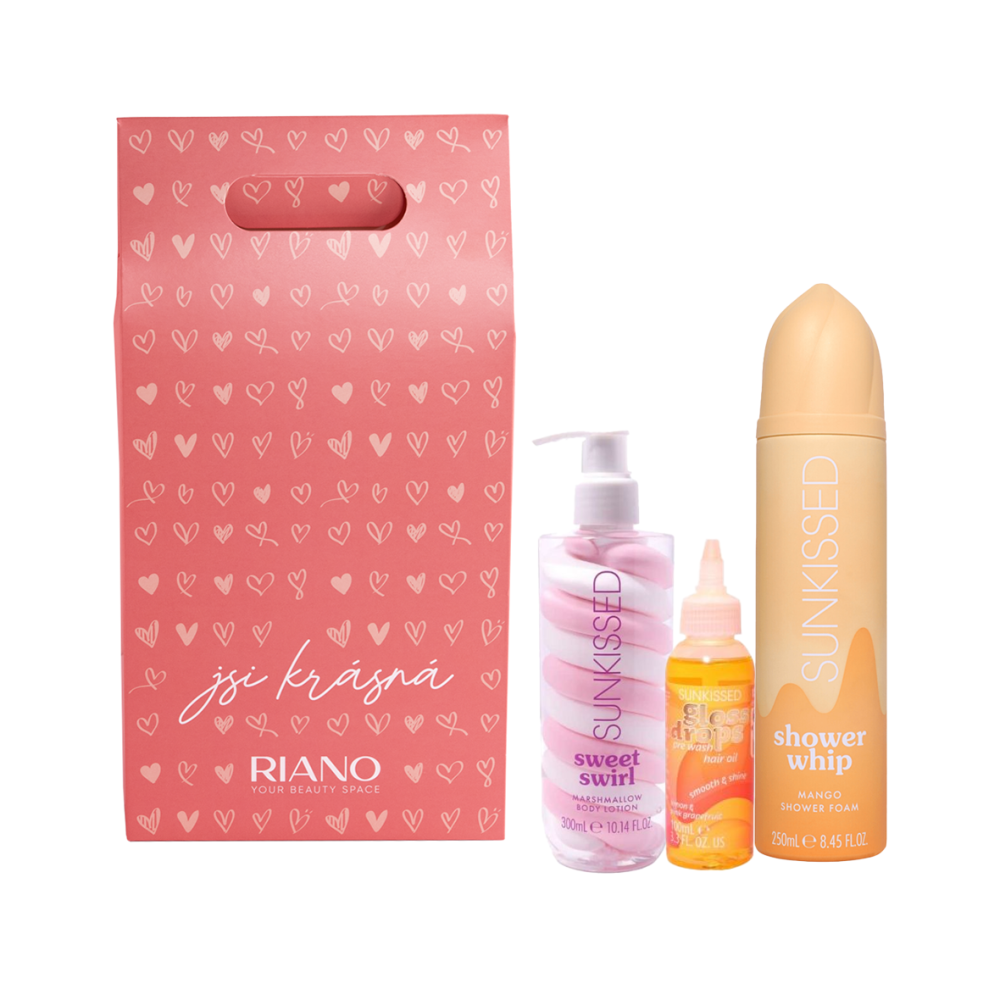 Dárková sada Sunkissed pro tělo i vlasy je perfektní kombinací péče, která potěší při každodenním rozmazlování. Obsahuje 2× sprchovou šlehačku, tělový krém a olej na vlasy před mytím, díky nimž se pokožka i vlasy dočkají jemné, vyživující péče.