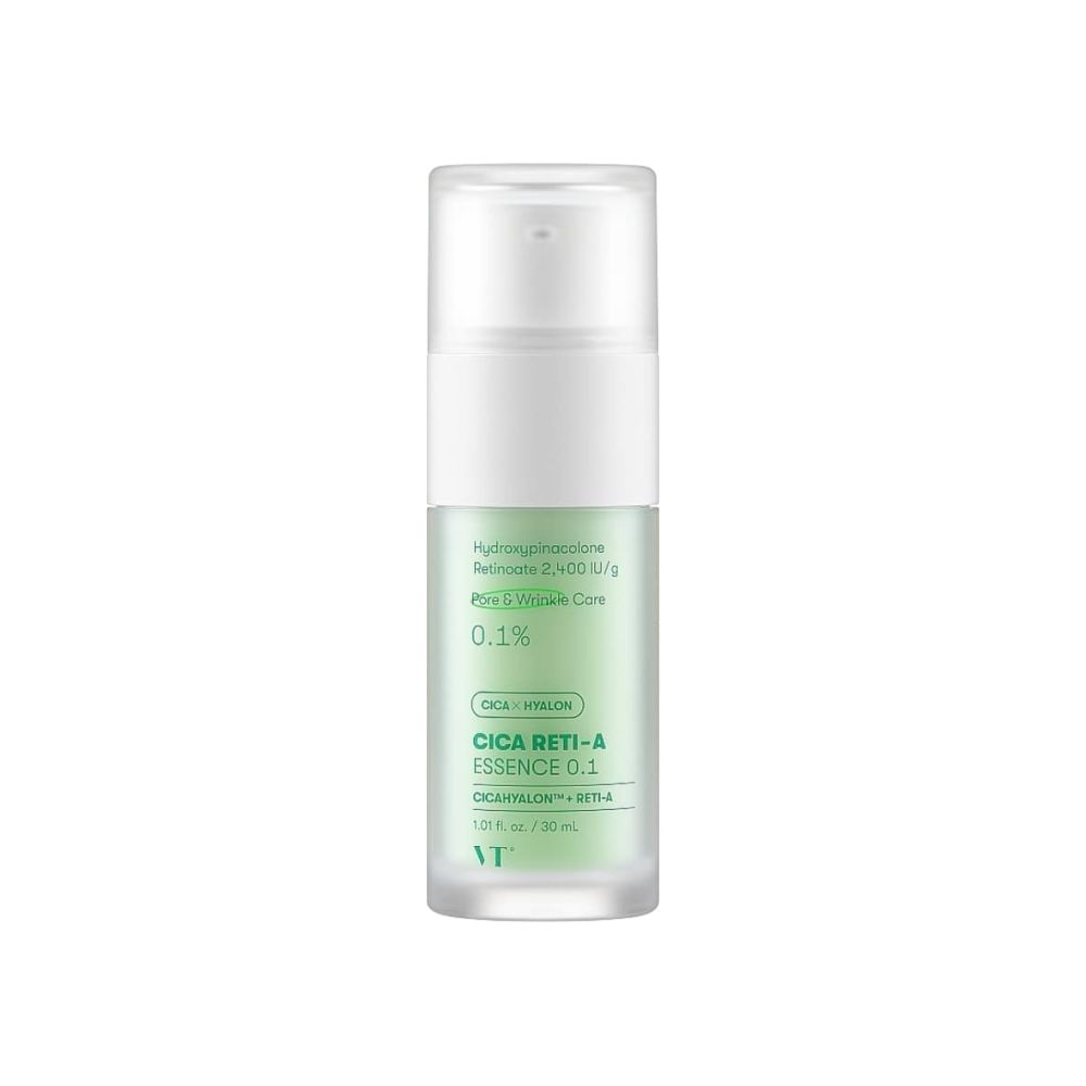 Chceš hladší, pevnější a sjednocenou pleť bez viditelných vrásek a pigmentací? Cica Reti-A Essence 0,1 % od VT Cosmetics spojuje sílu retinoidů nové generace s uklidňujícím CICA komplexem, ideální večerní rituál pro krásnou pleť.