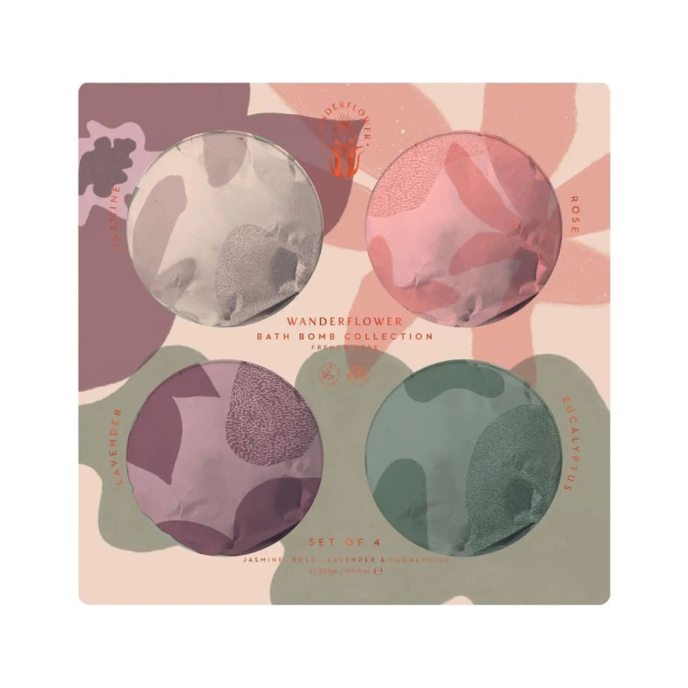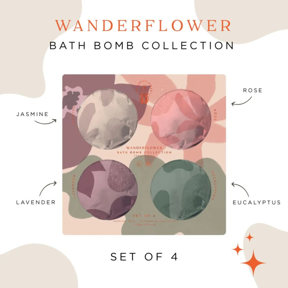 Objev kouzlo okamžité pohody s Wanderflower Bath Bomb Collection – sadou čtyř luxusních šumivých bomb do koupele, které promění tvou koupel v voňavý únik od každodenního shonu.